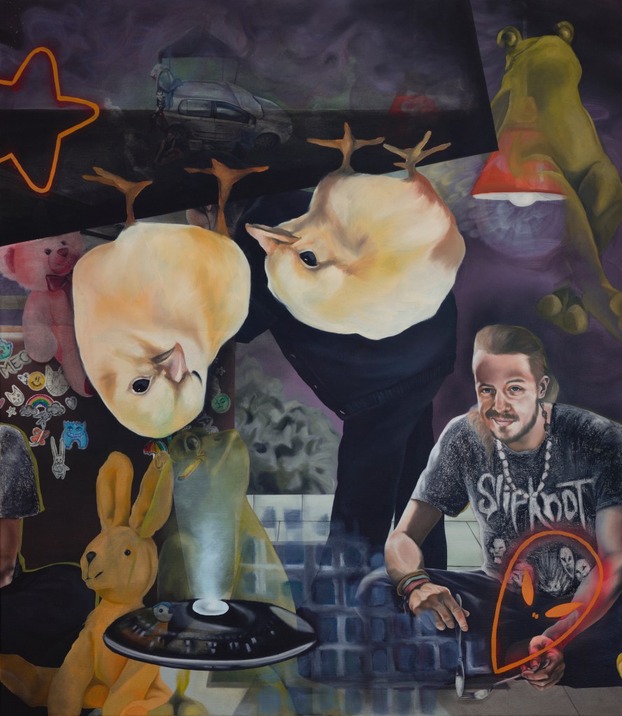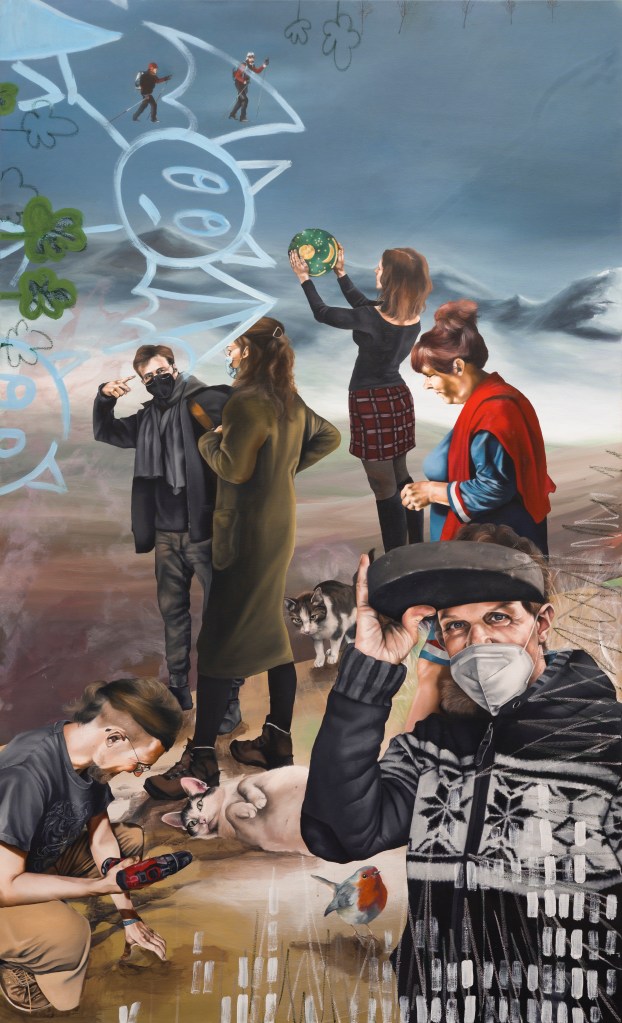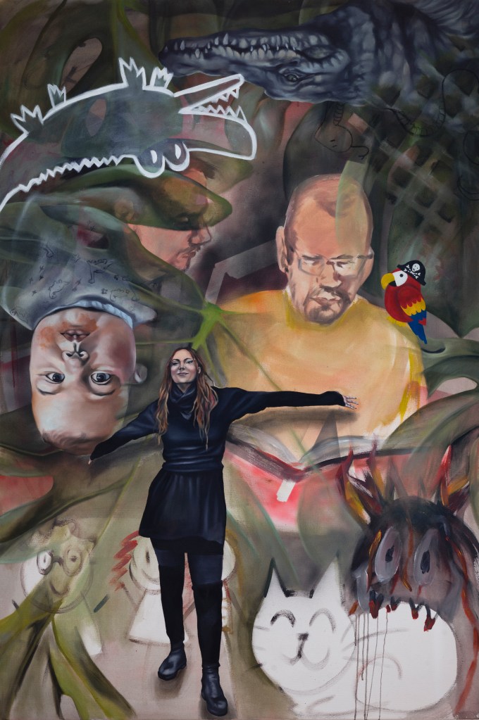 ARIADNES FADEN, 180 x 120 cm, Oil and Acrylics on CanvasDAEDALUS WAR DER ERSTE FLUGUNFÄHIGE VOGEL, 130 x 70 cm, Oil and Acrylics on CanvasWARTEN AUF DEN GROßEN DURCHBRUCH, 40 x 30 cm, Oil and Acrylics on CanvasDAS MDV TICKET NOCHMAL NUTZEN, 60 x 40 cm, Oil on CanvasTESTOSAURUS-REX, 70 x 80 cm, Oil and Acrylics on CanvasSTORYTELLER, 70 x 90 cm, Oil and Acrylics on Canvas