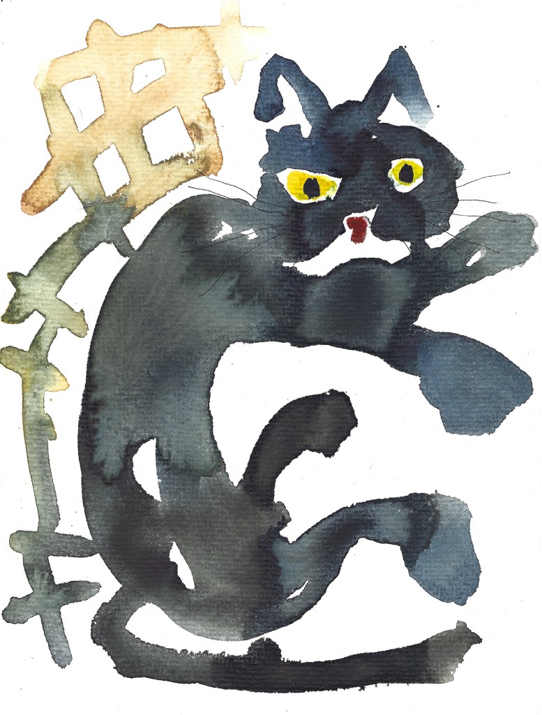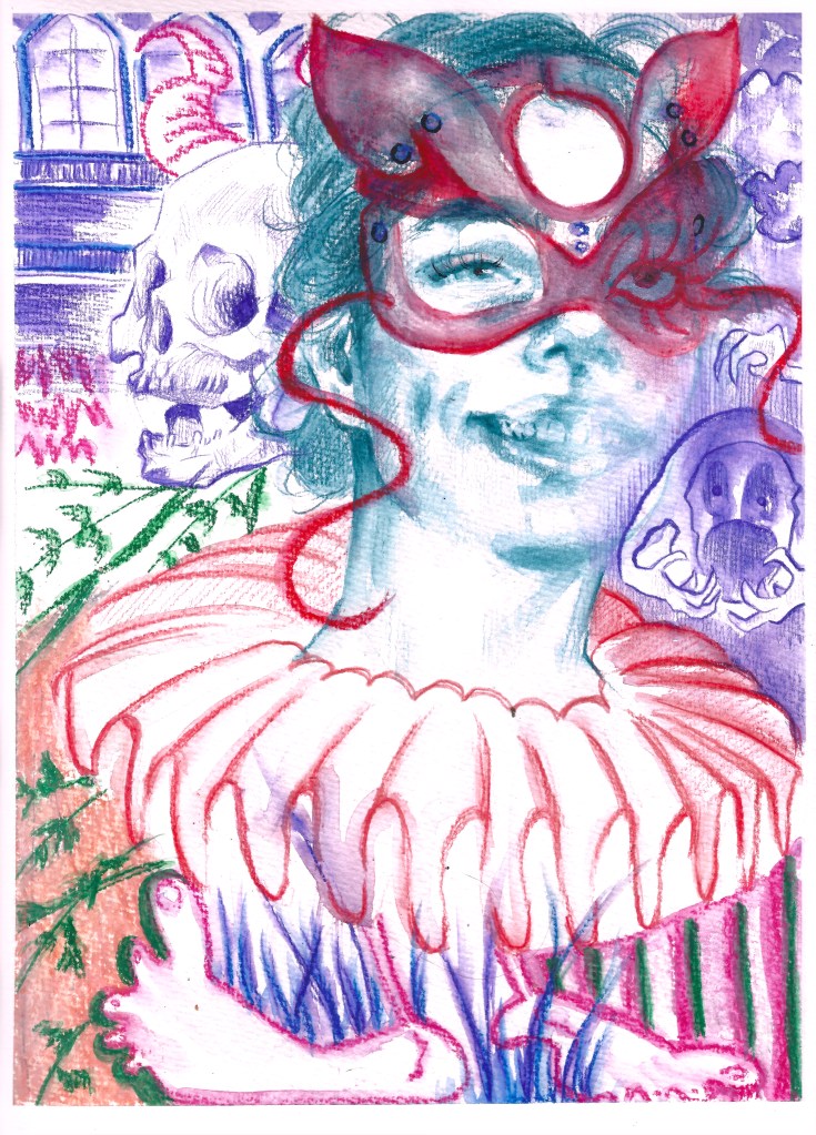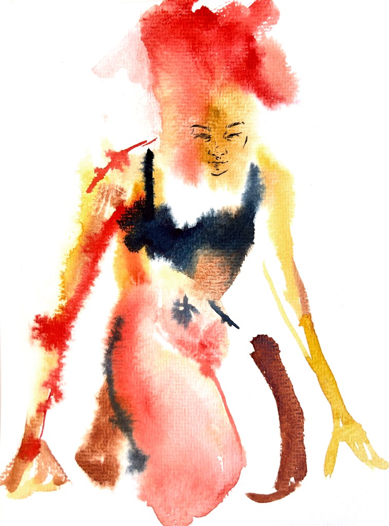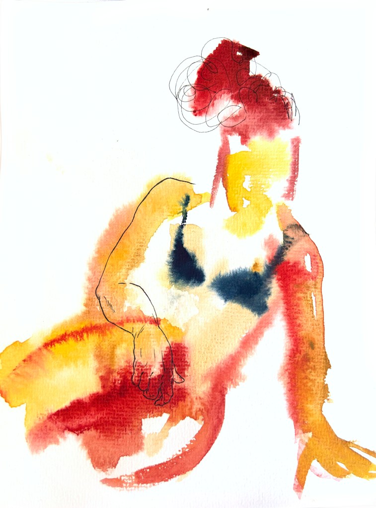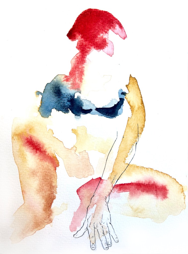 self portraits in front of my wardrobe mirror, 24 x 18 cm, Aquarell und Tusche auf Büttenpapier Bertie mit meiner Kuscheldecke, 24 x 18 cm, Aquarell auf Büttenpapier